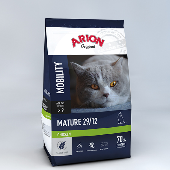 Een oude rakker in huis? Nu je kat minder beweegt, helpt ARION Original Mature 29/12 je kat gezond en in conditie te houden.